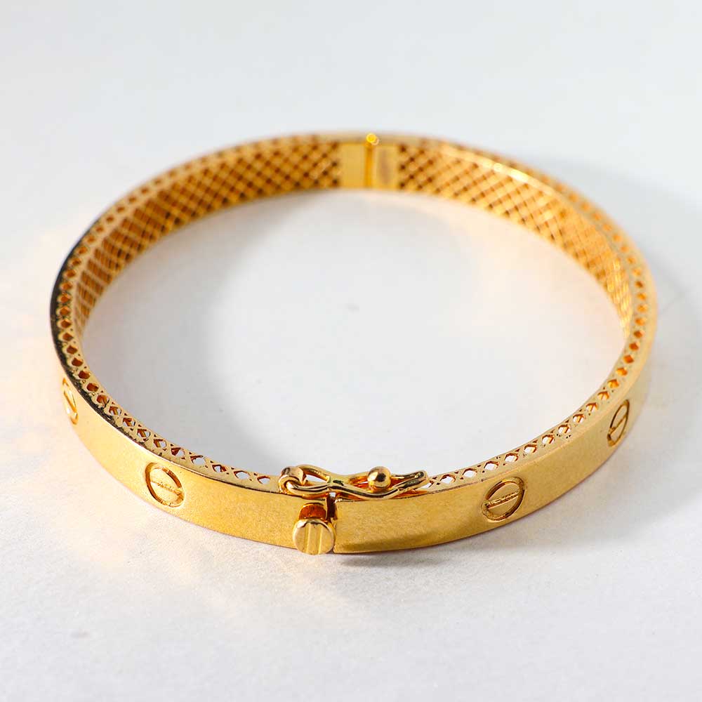 Expertly crafted in 22K pure gold with a certified 916 hallmark, this unisex bracelet showcases the iconic Cartier screw motif—bold, minimal, and meaningful. Designed for those who appreciate refined luxury in everyday moments or special celebrations.