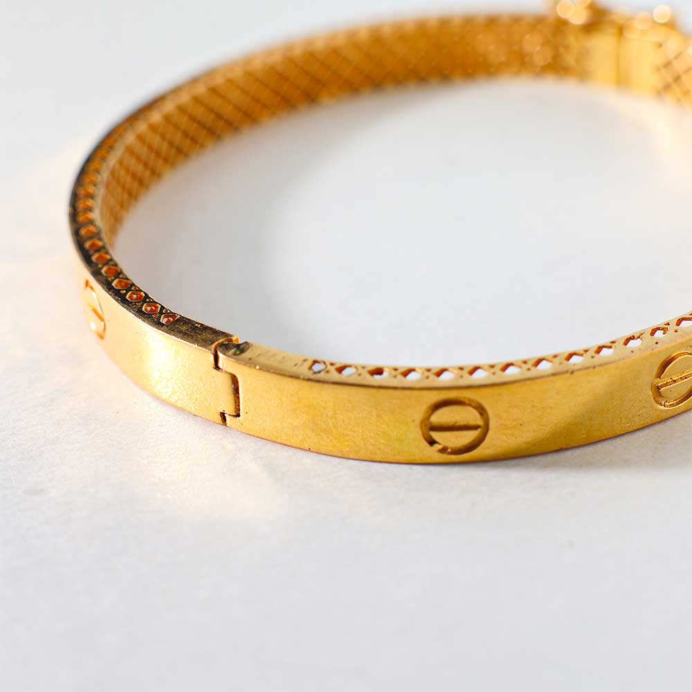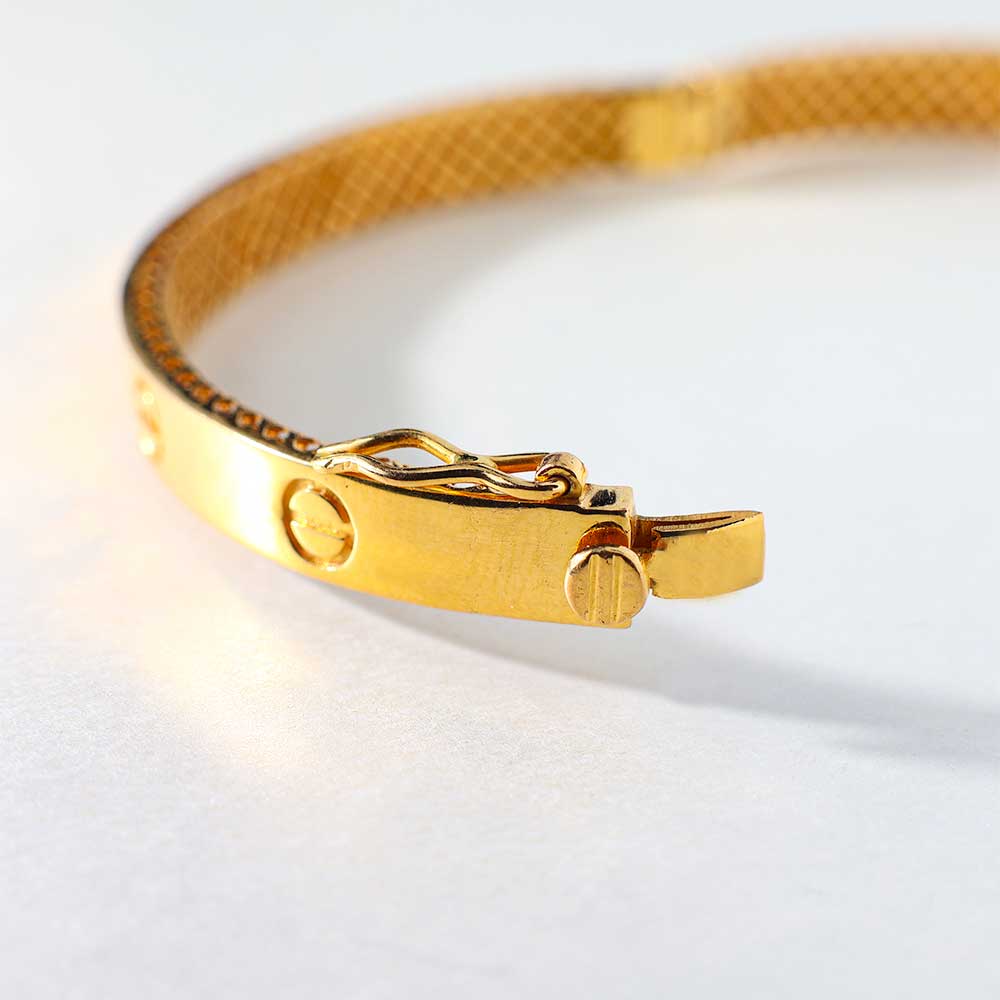 Content: 1 Unisex 22K Gold Cartier-Style Screw Bangle