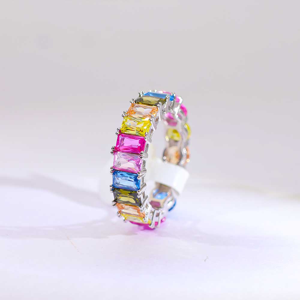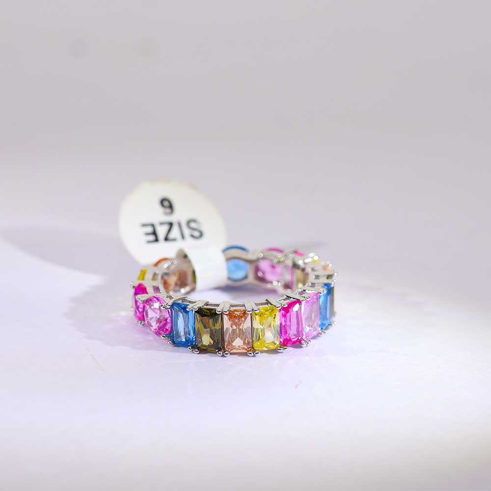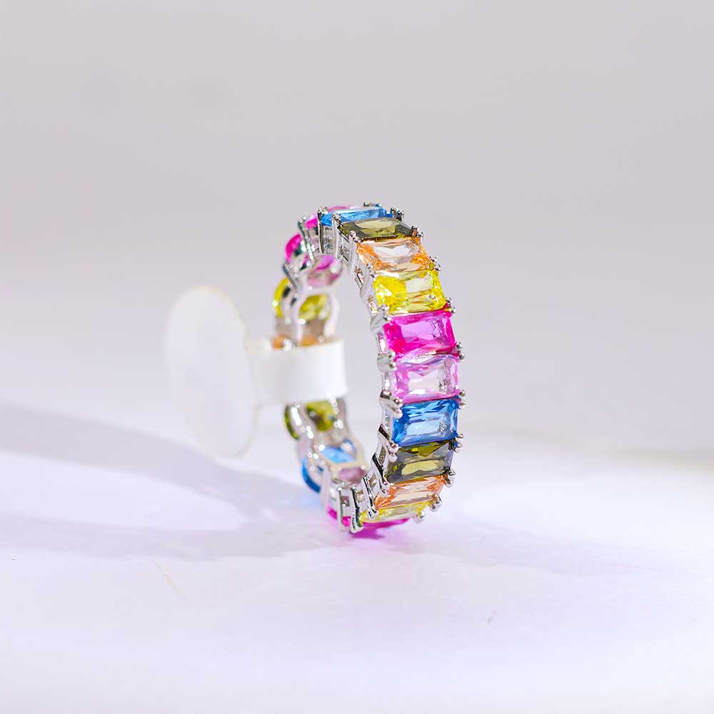 Crafted with vibrant, multi-colored stones set in a radiant 925 silver base, this eternity band adds an instant pop of color and charm. It’s made for stacking, styling, and standing out—whether it’s a gift or your new favorite.-
