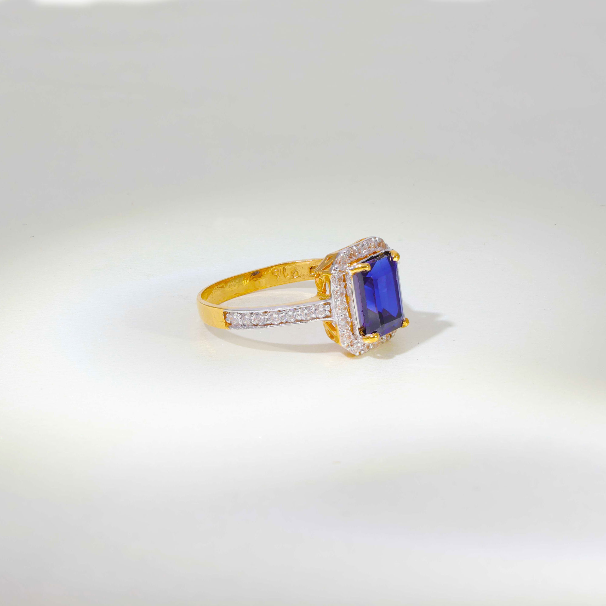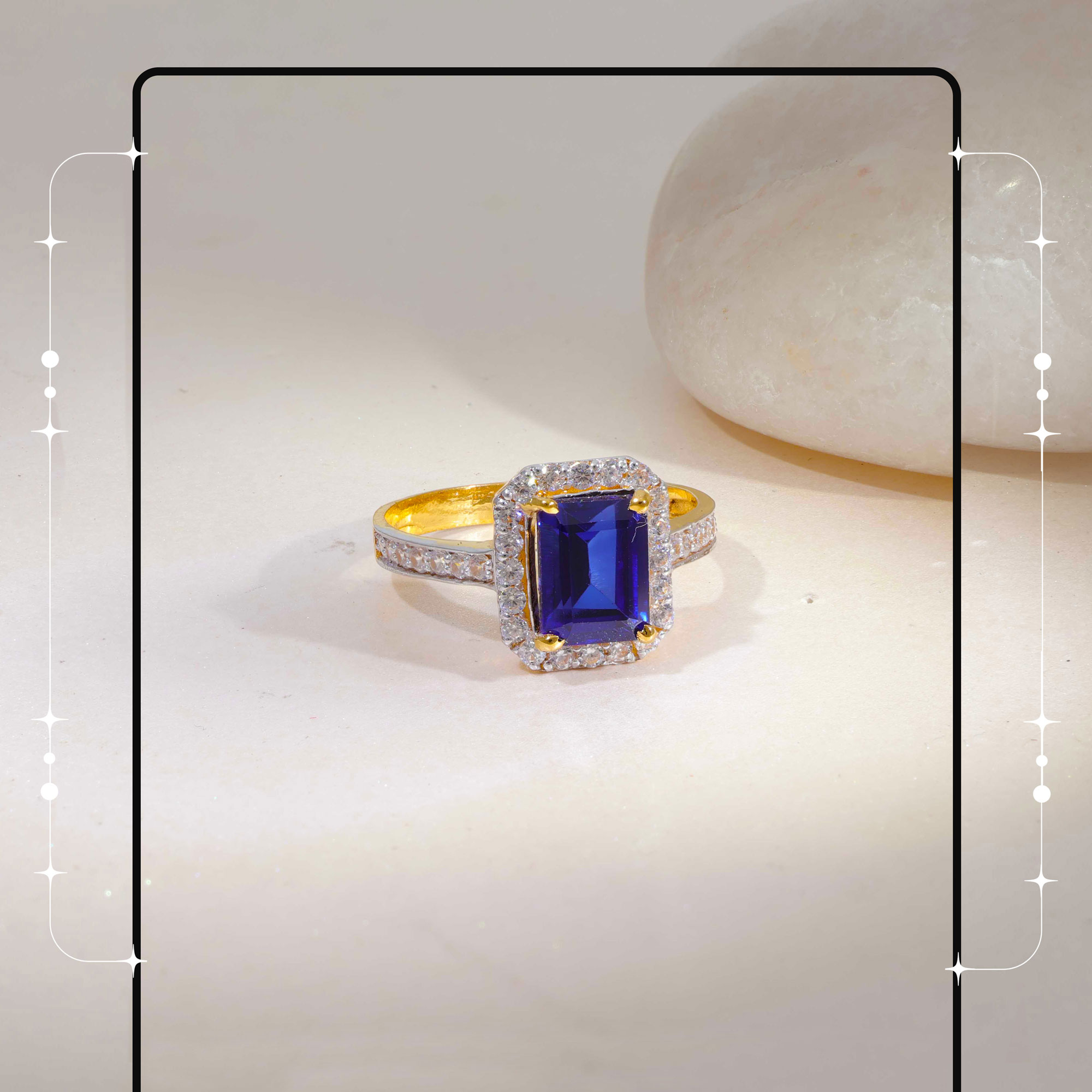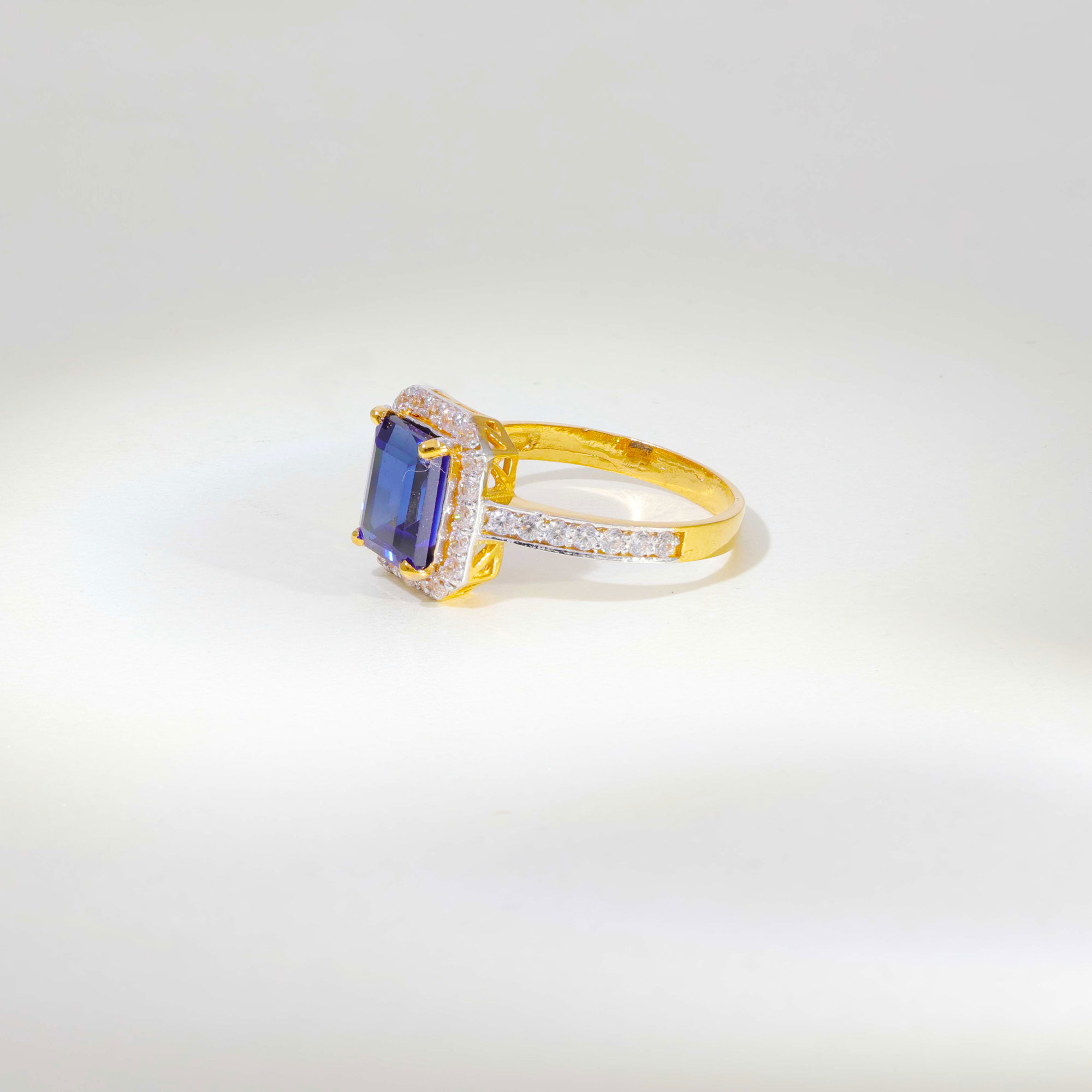 Emerald Cut Blue Tanzanite Solitaire Gold Ring