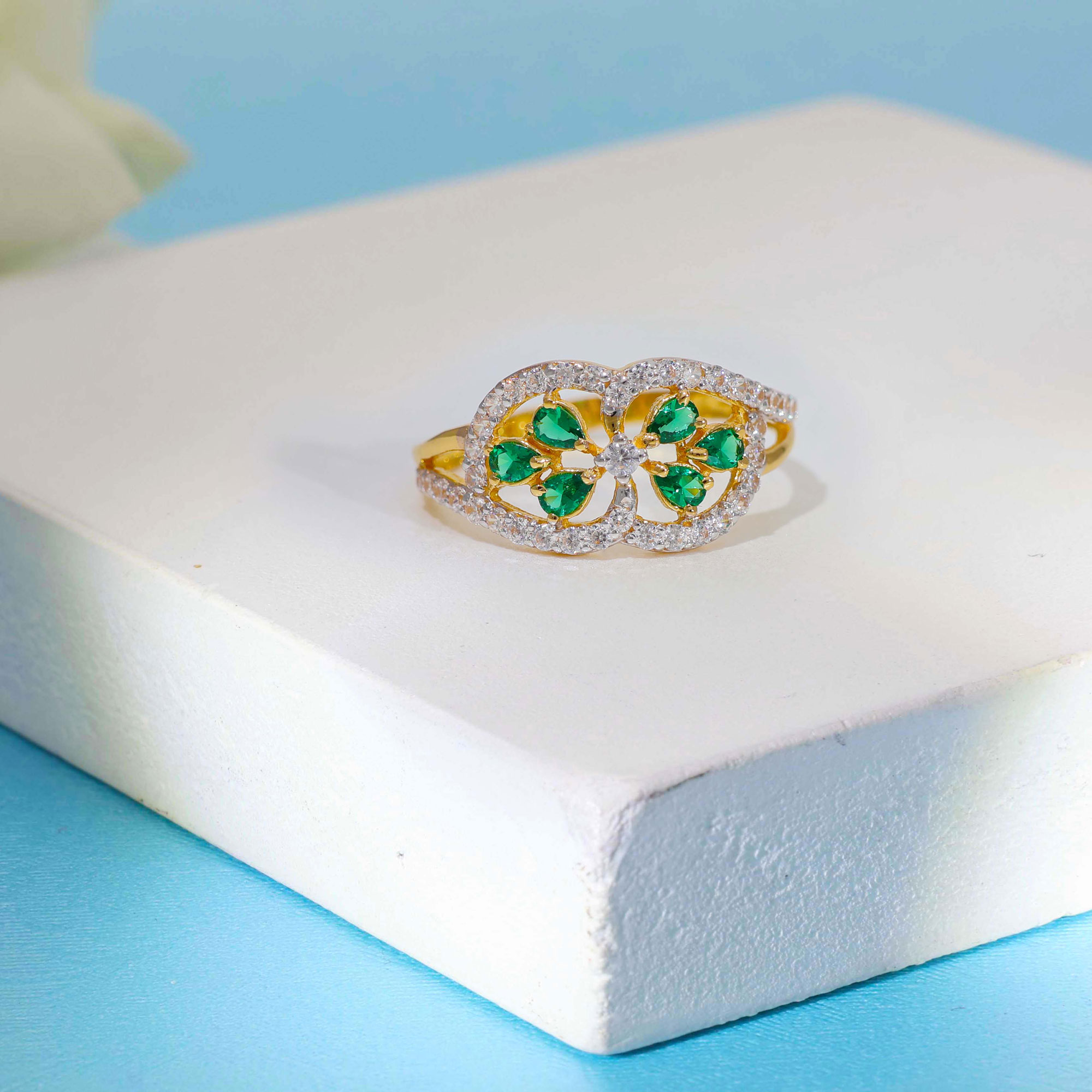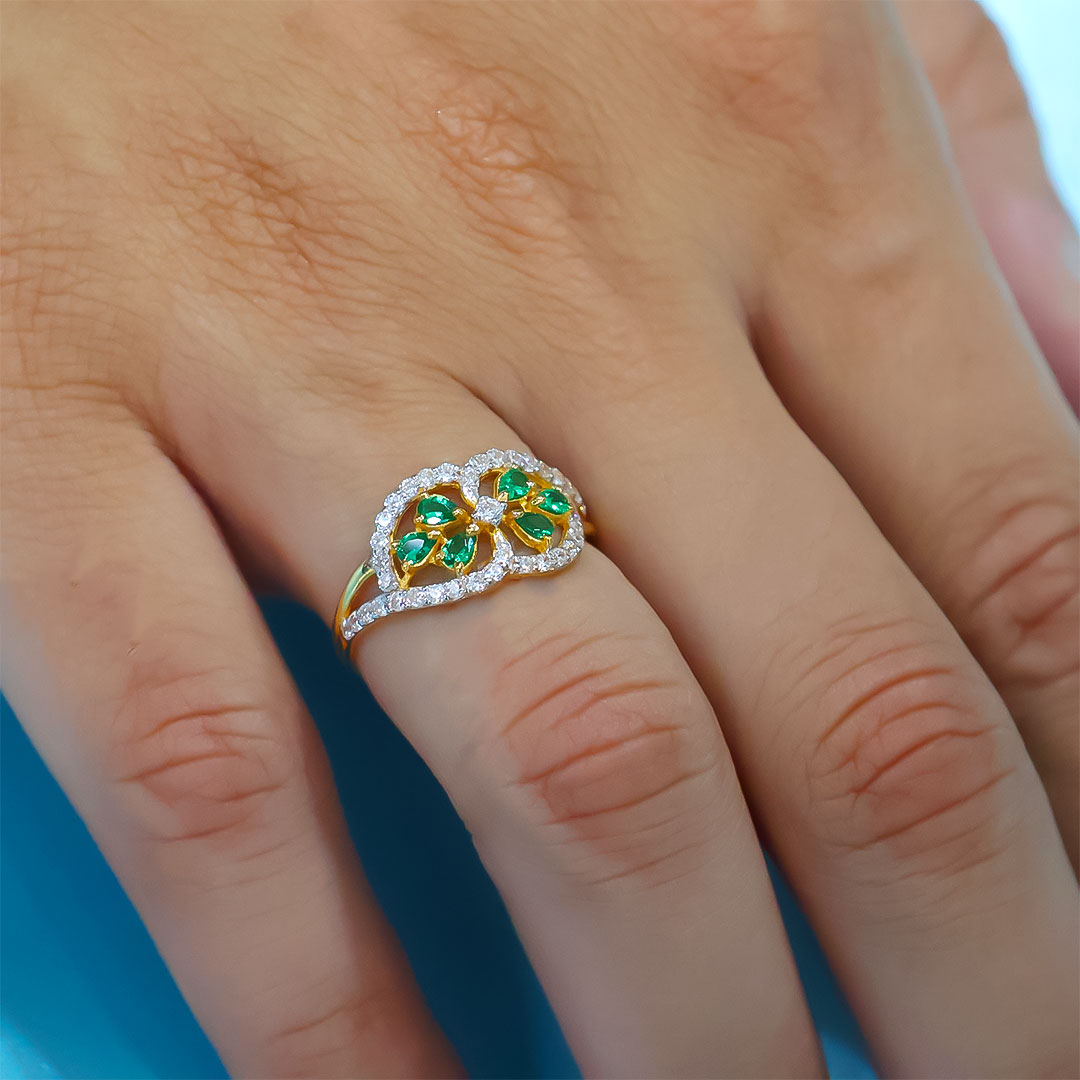 Emerald Stone With Solitaire Ring