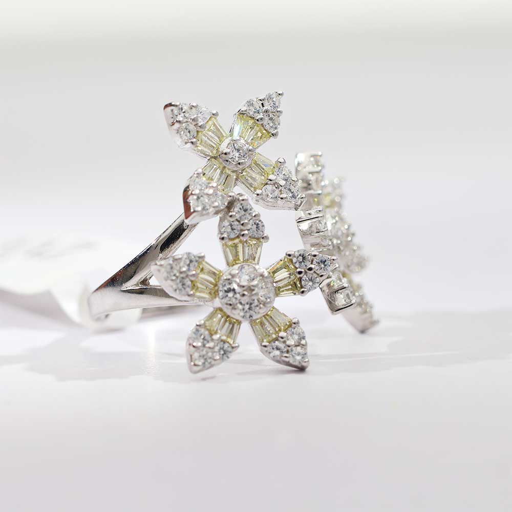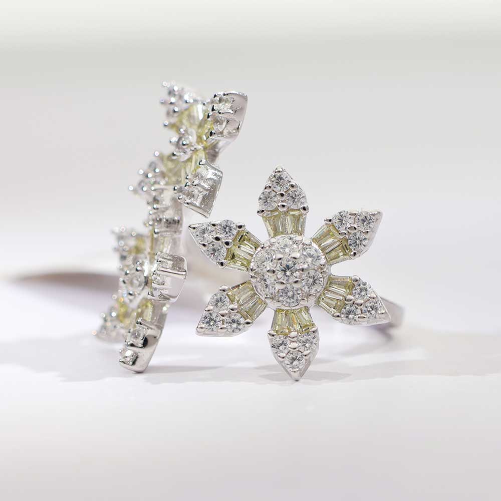 Inspired by frosted petals under winter moonlight, this cocktail ring turns every glance into a sparkle story.The Design: