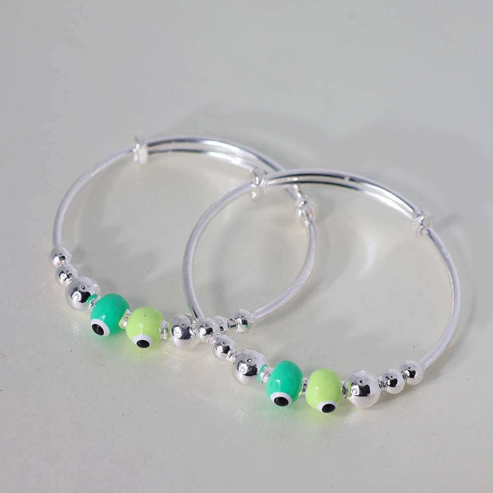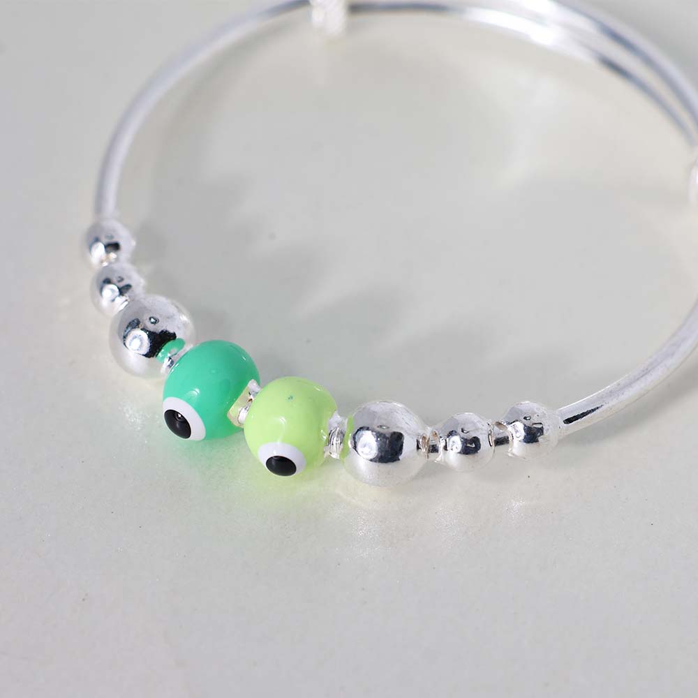 Evil eye jewellery is more than just a trend; it’s a symbol of protection and good energy. This kada is designed with silver beads and blue evil eye charms, believed to ward off negativity while making a fashionable statement.