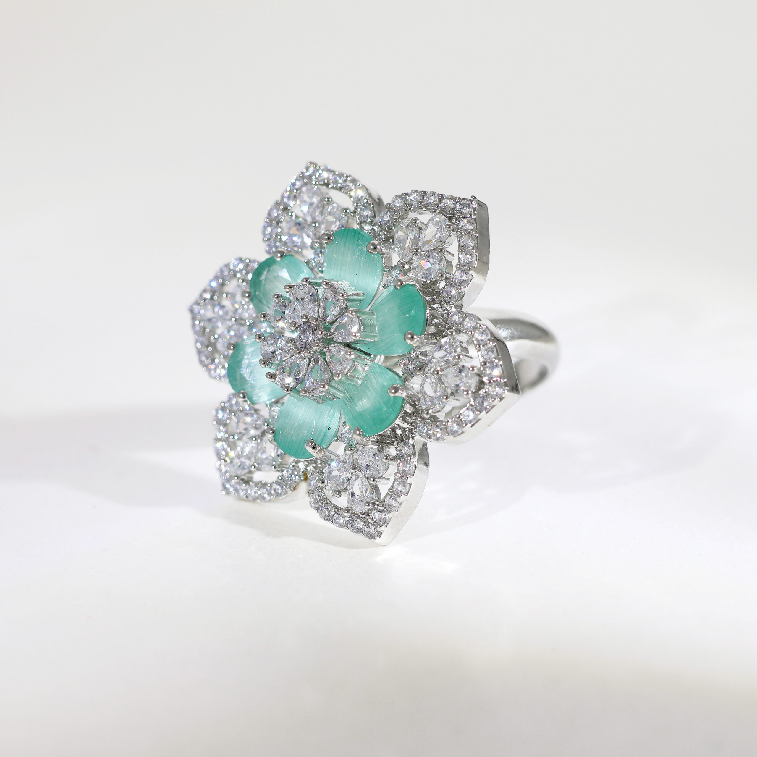 Where spring meets shimmer. The Petal Frost Elegance Ring is a poetic mix of cool tones and floral curves, designed for the dreamer in you.The Design: