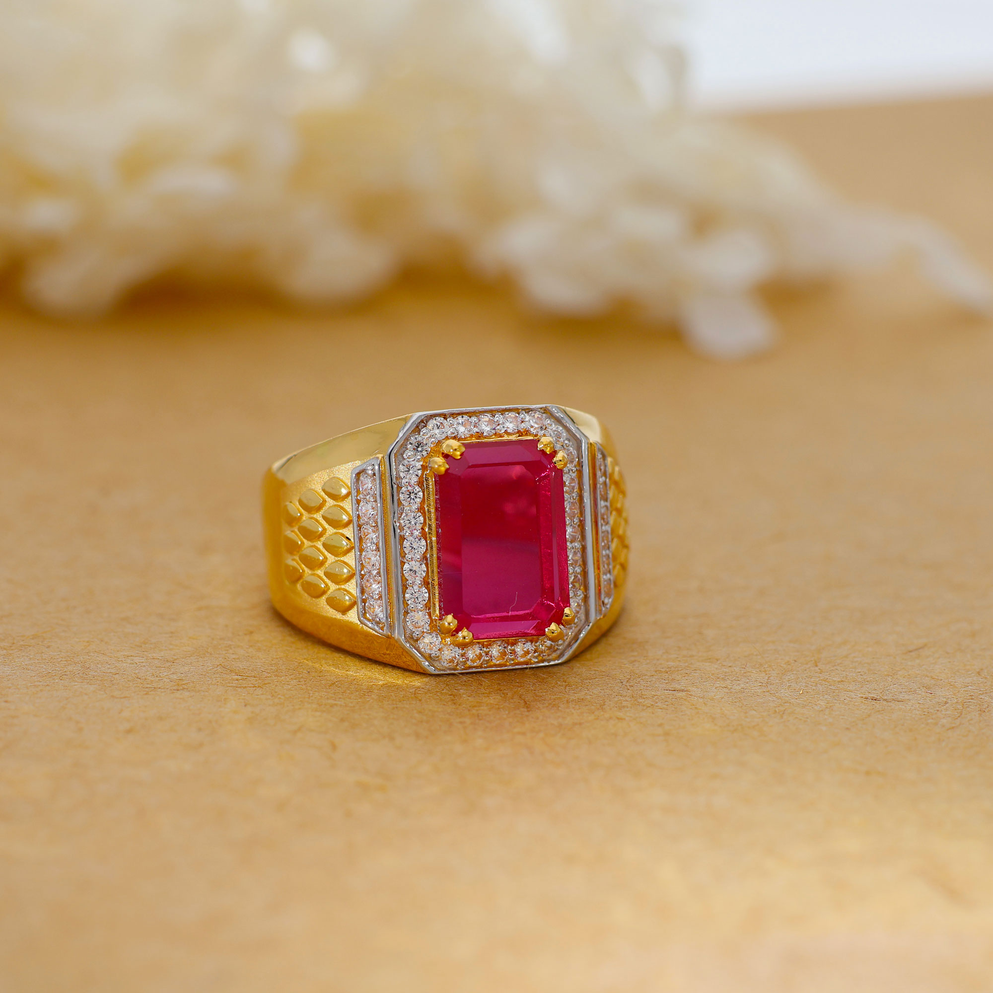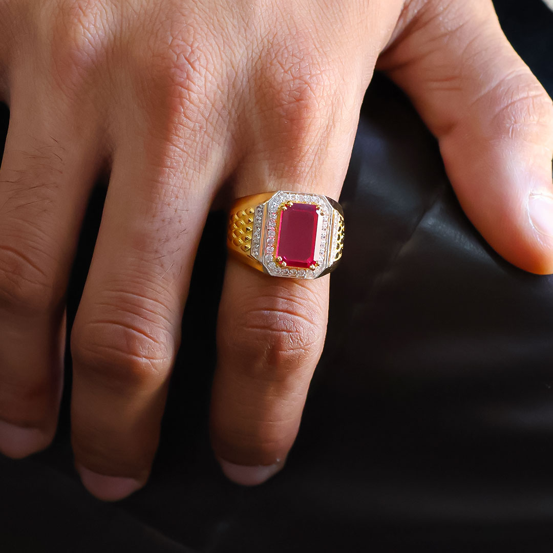Pink Stone Gold Gents Ring