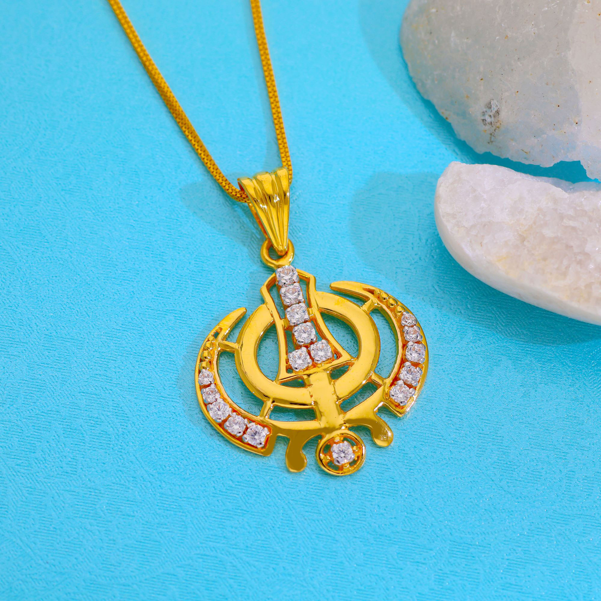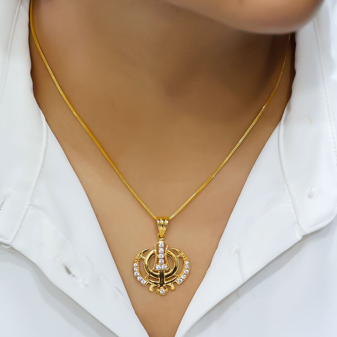 Polki Pave Solitaire Pendant, Sikh Pendant