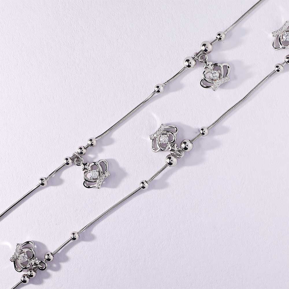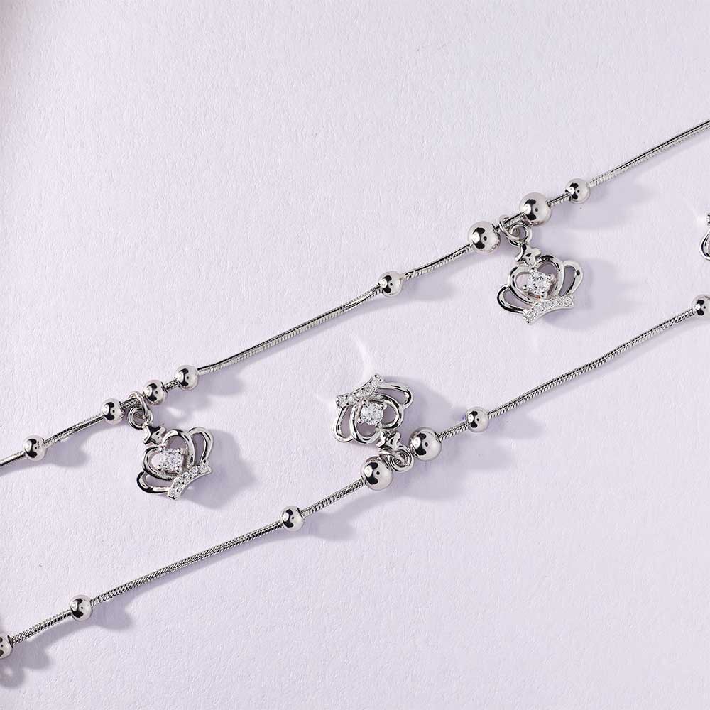With beautifully sculpted crown charms and twinkling stones, these anklets balance youthful charm and queenly grace.