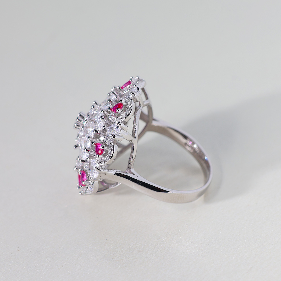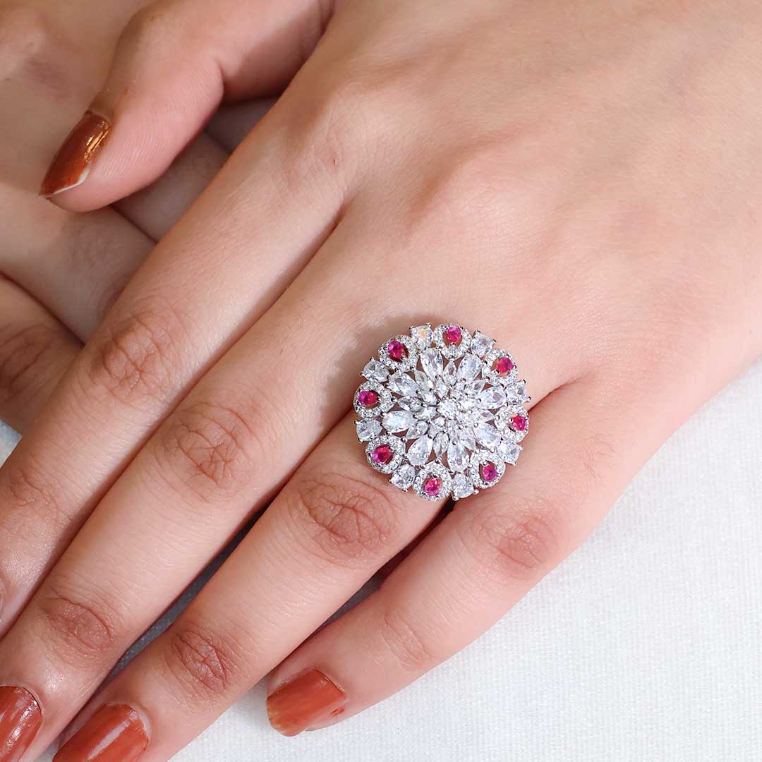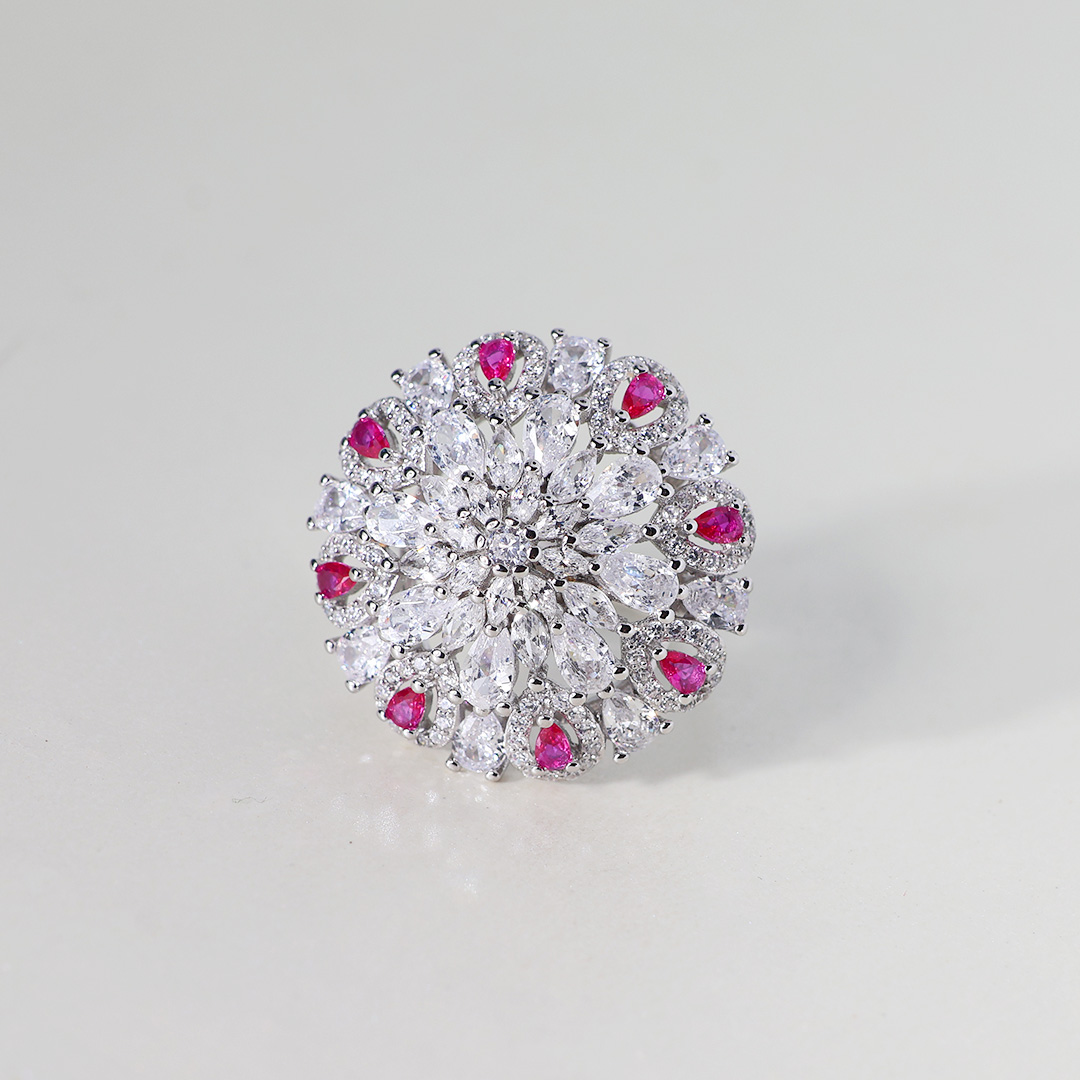Statement Piece: This ring is definitely a statement piece, designed to attract attention and admiration. Its unique design and combination of sparkle and color make it a conversation starter.