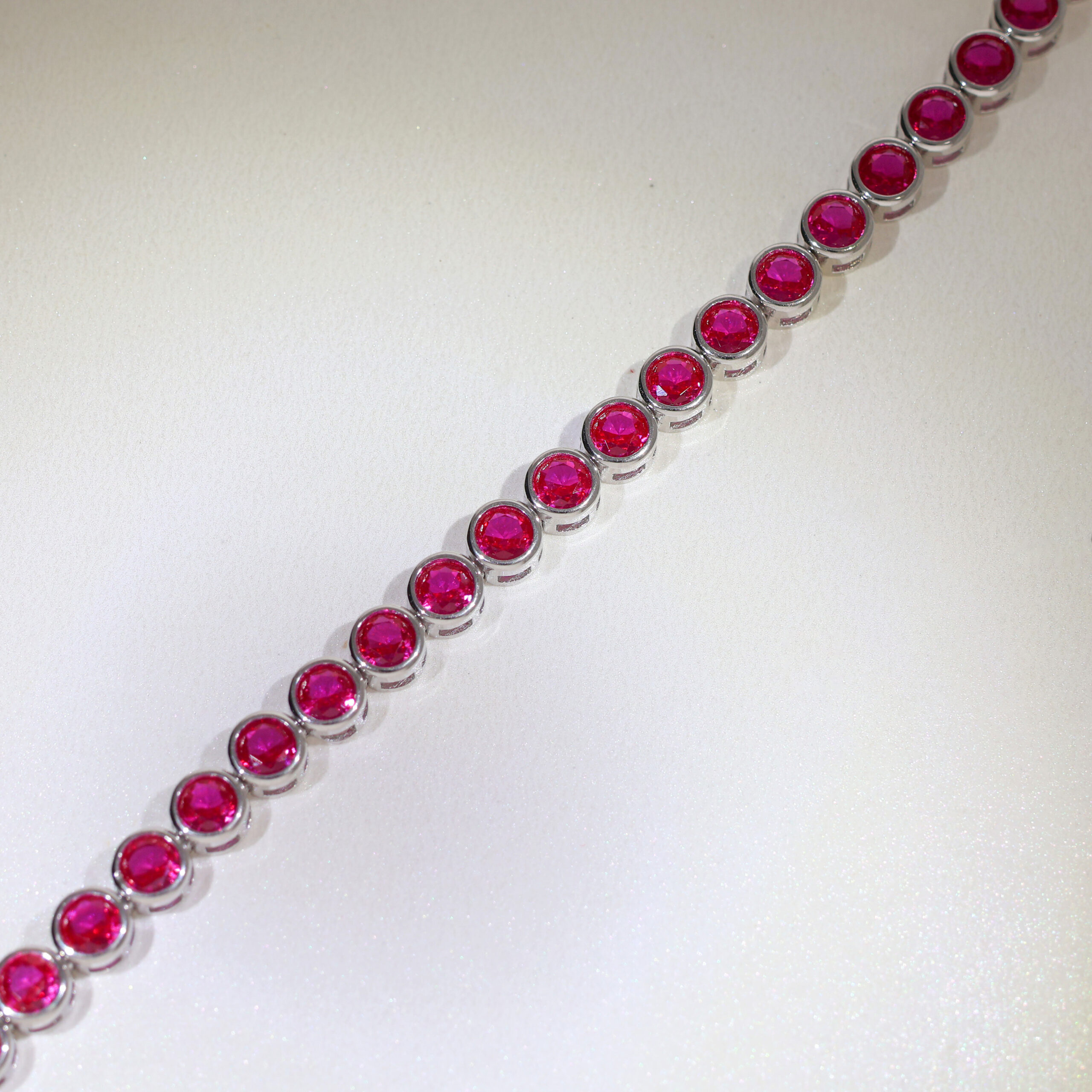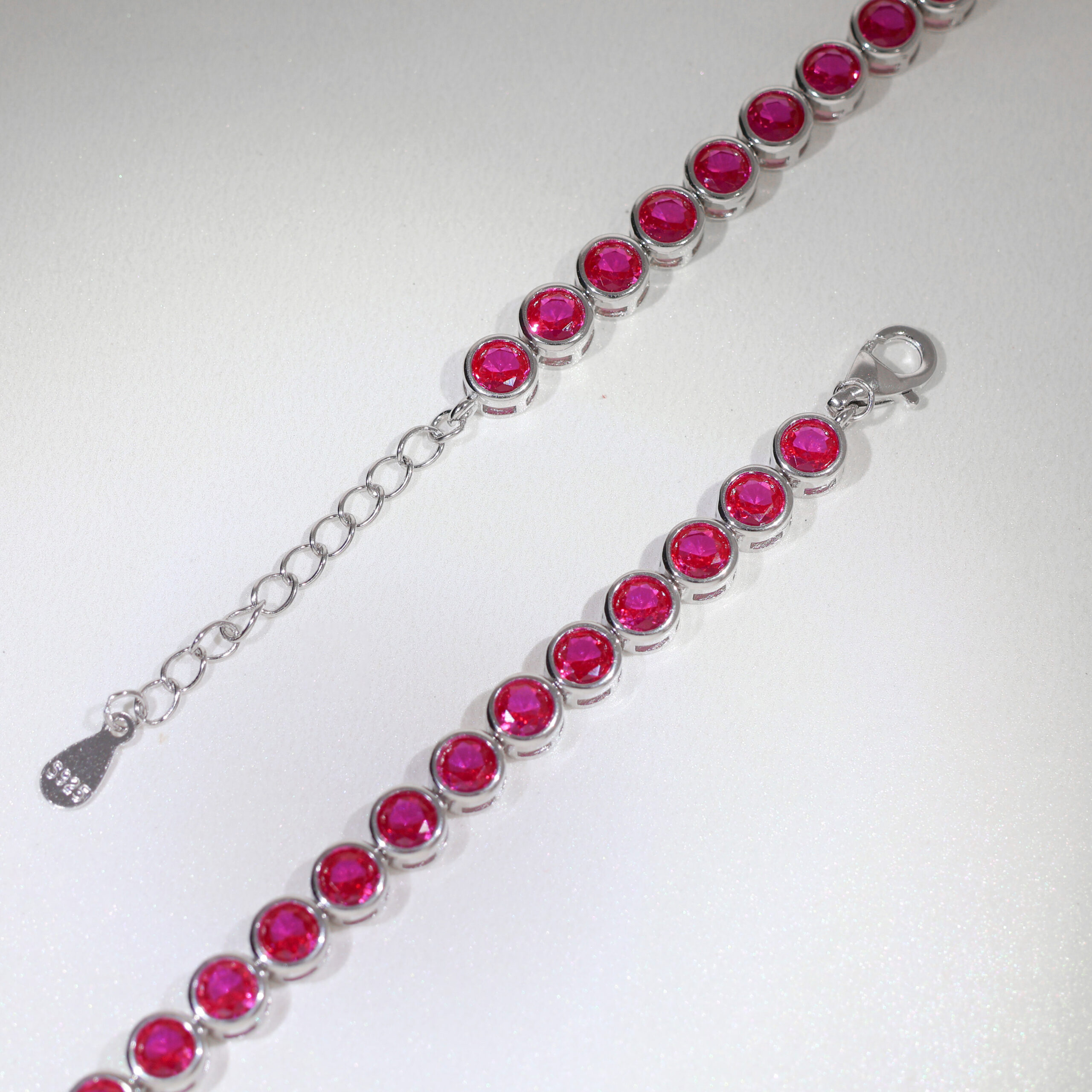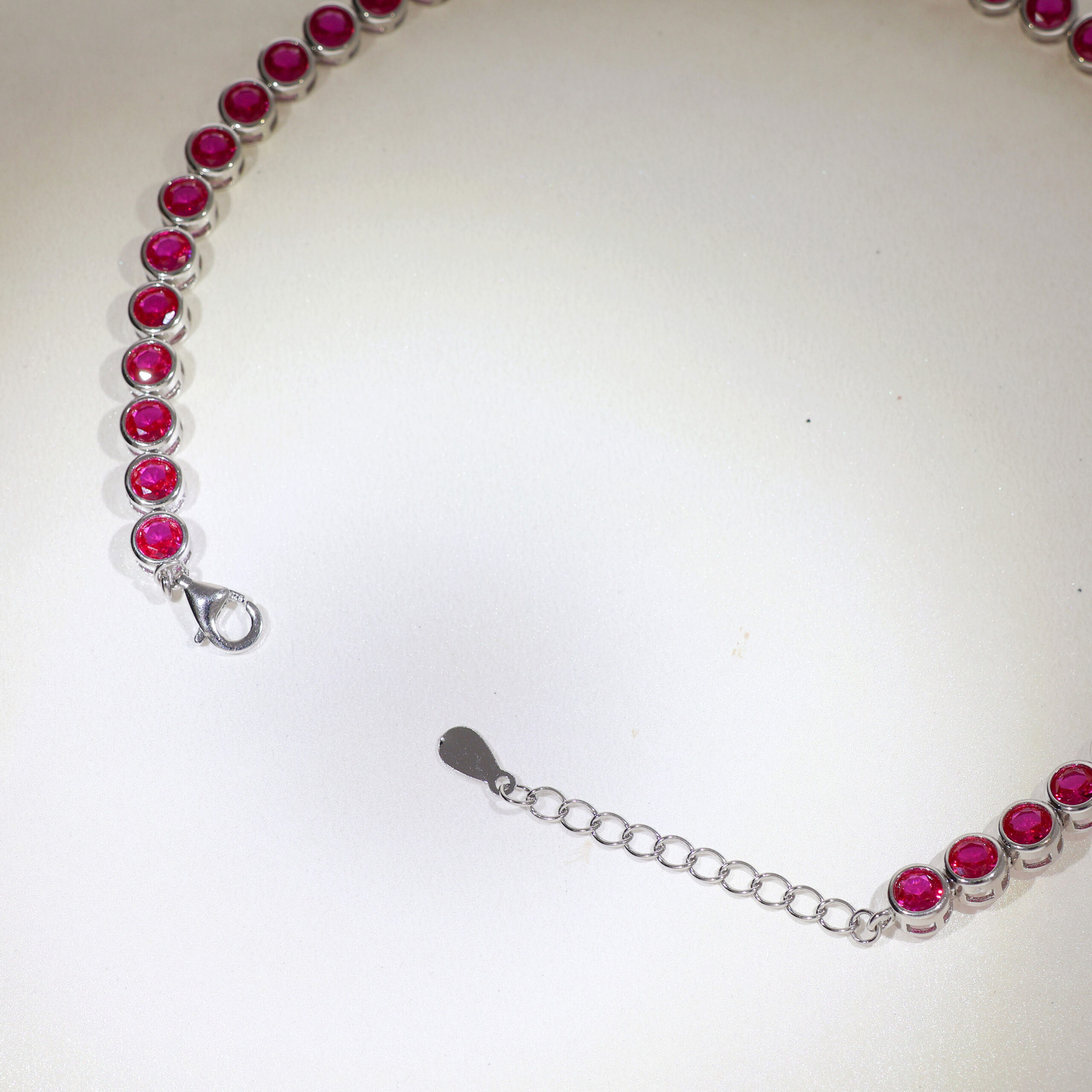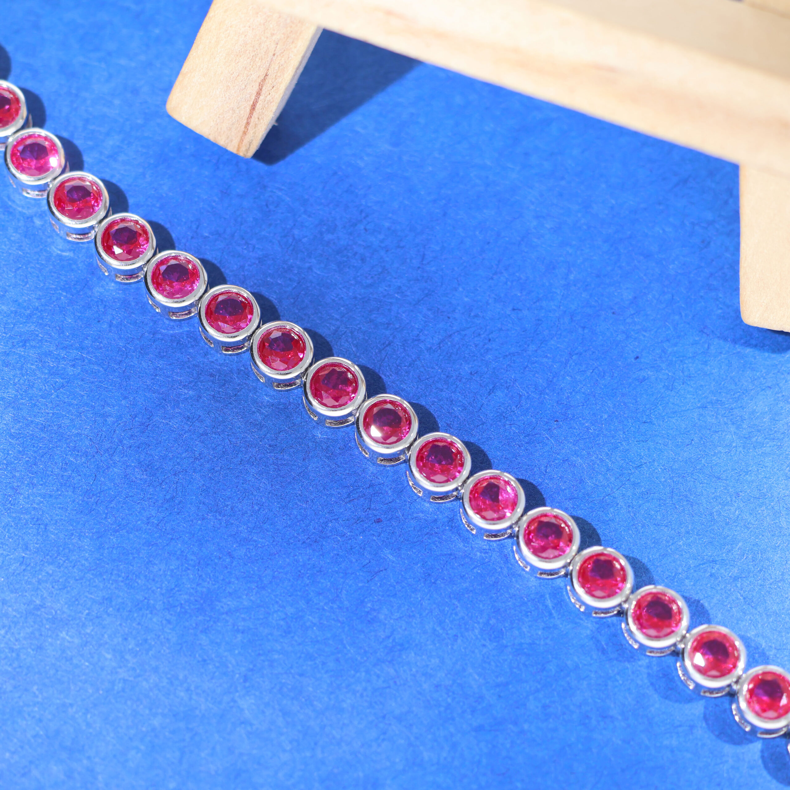 A masterpiece of elegance, the Ruby Luxe Bracelet features radiant ruby-inspired round gemstones set in a polished silver frame. Each stone is meticulously cut to reflect light, creating a mesmerizing sparkle that enhances your look. The bracelet’s adjustable chain ensures a secure and comfortable fit, making it suitable for any wrist size. Perfect for weddings, parties, or even daily wear, this timeless design effortlessly blends sophistication with versatility. Whether gifting it to someone special or adding it to your collection, this bracelet promises to be a statement of luxury and style.