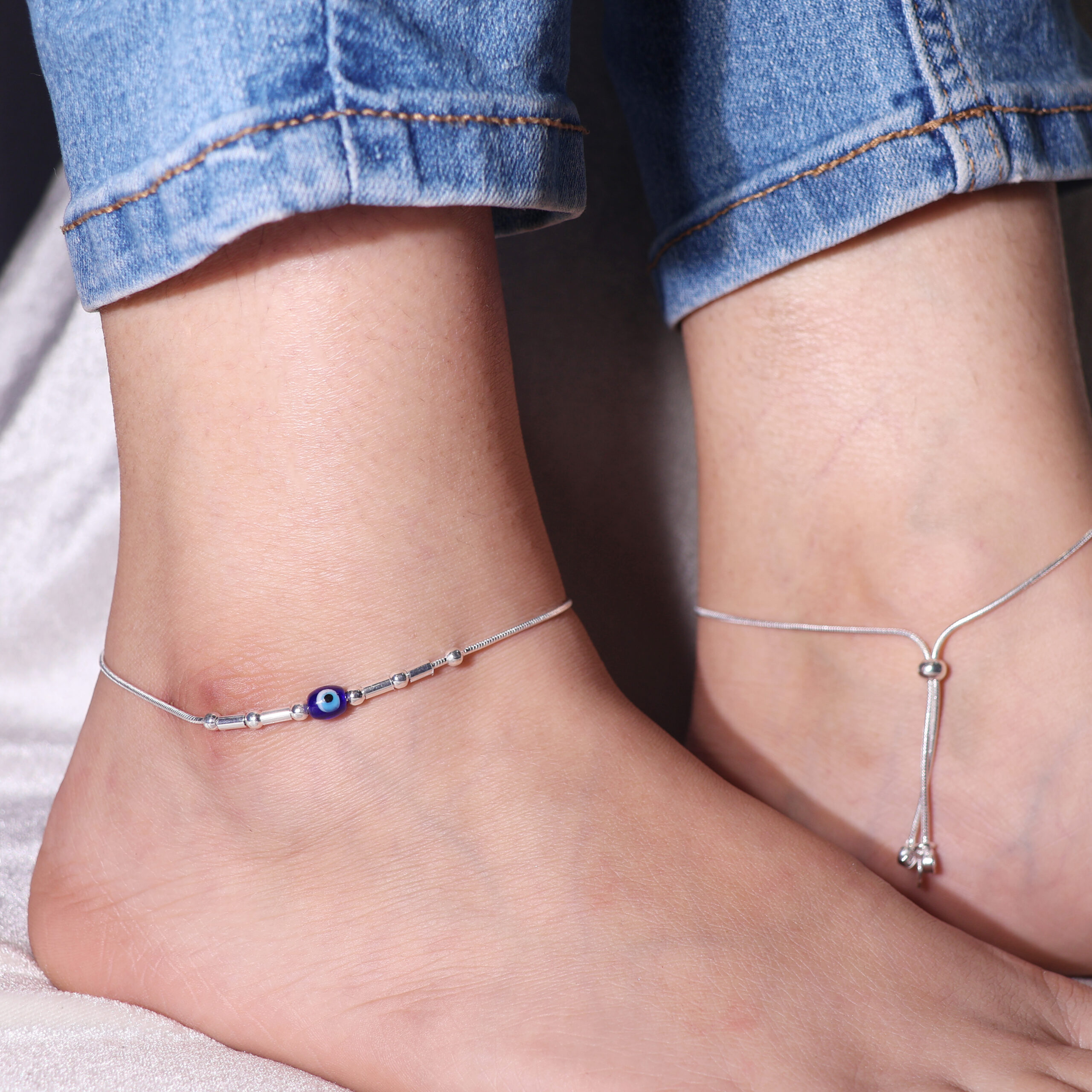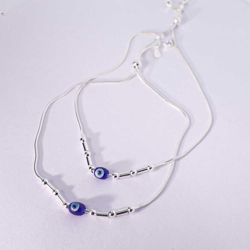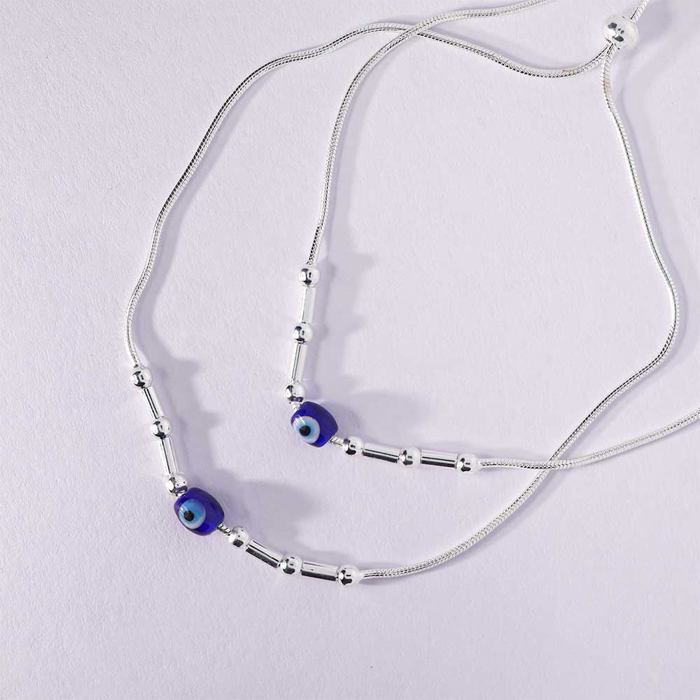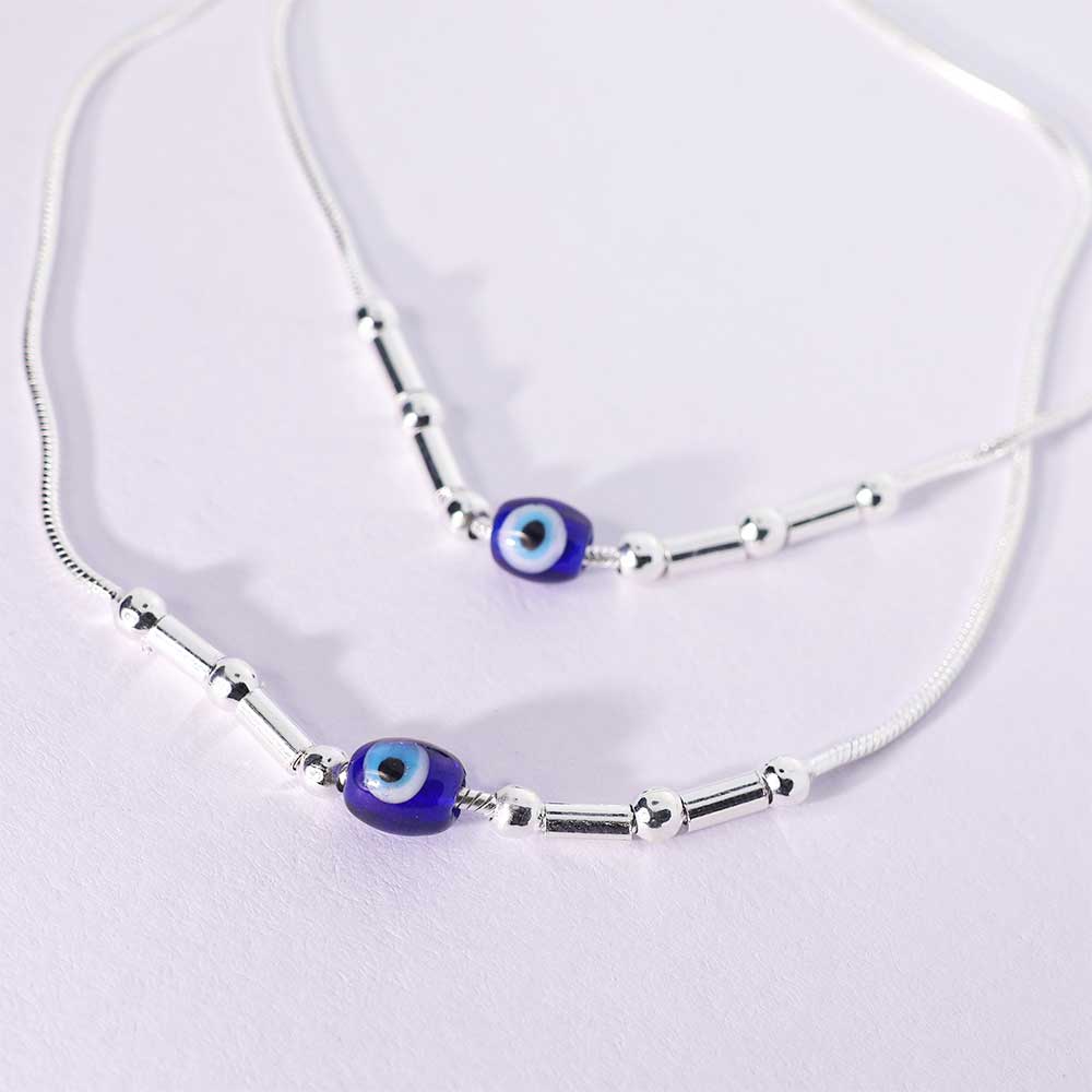 Content: 1 Pair of Silver Aura Evil Eye Anklets