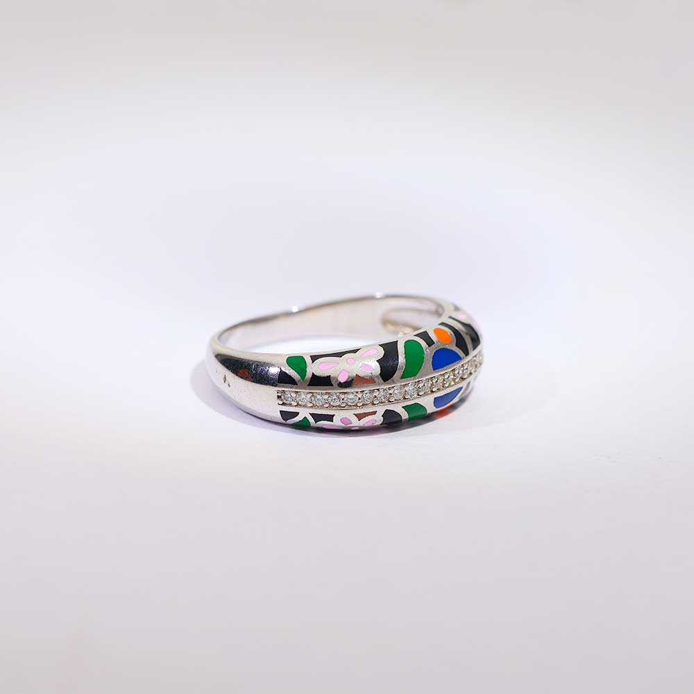 Celebrate moments that matter with a vibrant splash of sky blue. The Sky Blue Dotted Silver Band is a bold and refreshing addition to your 925 silver jewellery by Zvar collection.The Design: