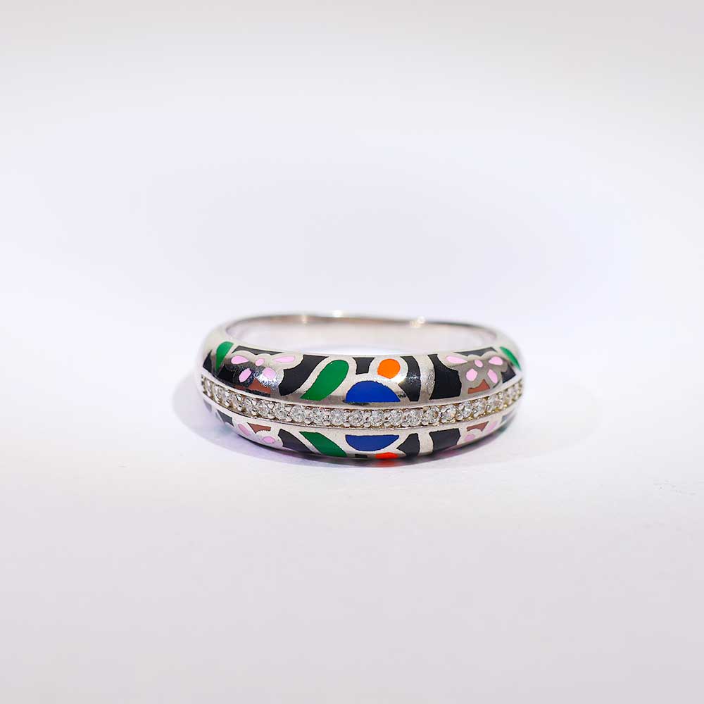 Featuring a smooth sky-blue enamel surface with playful silver-toned dot accents around a polished 925 silver base, this band adds a fun, modern twist to timeless elegance.Highlights: