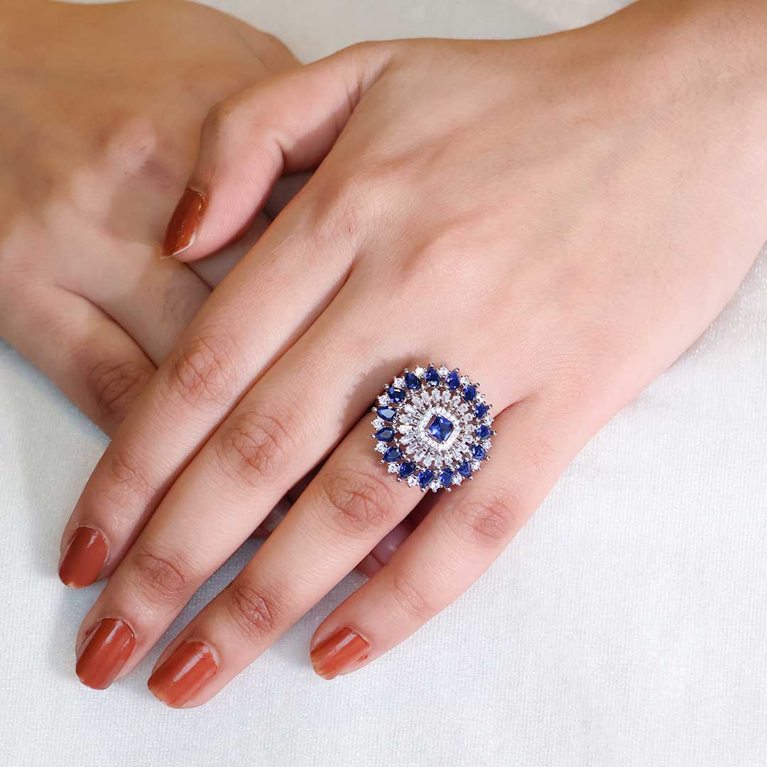 With its substantial size, bold design, and vibrant gemstones, this ring is a true statement piece, perfect for adding a touch of glamour to any occasion.