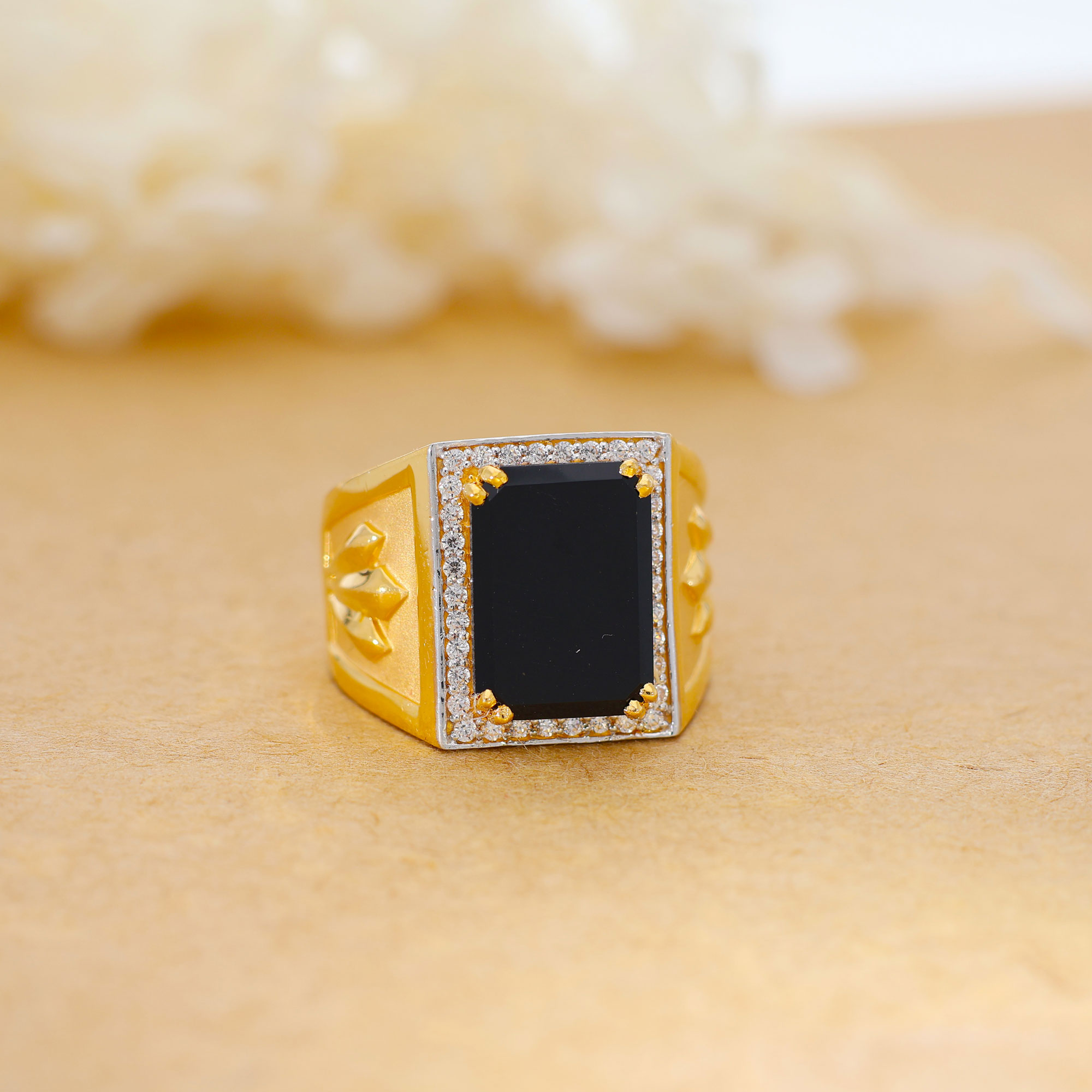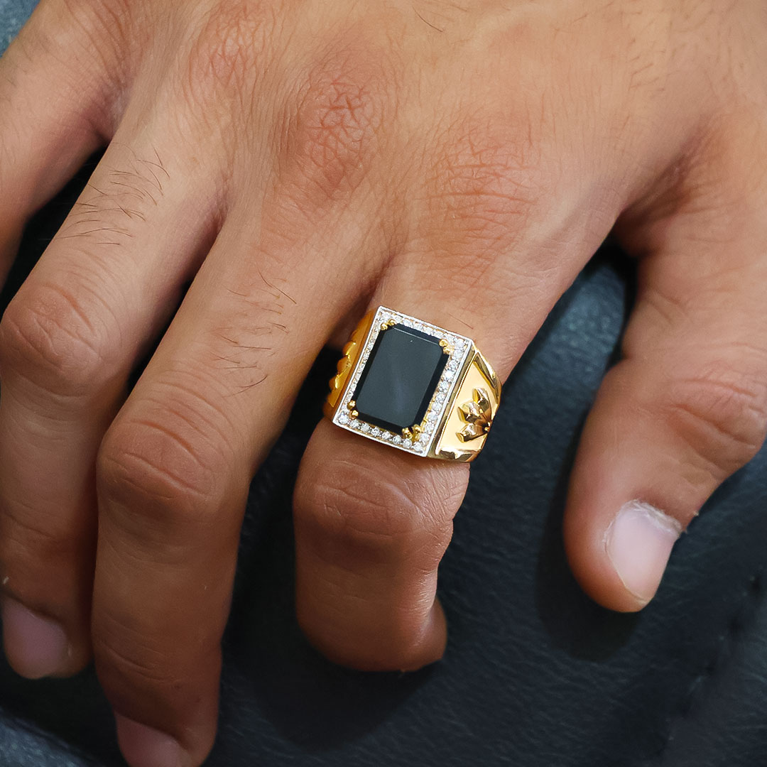 Unique Black Stone Gold Gents Ring